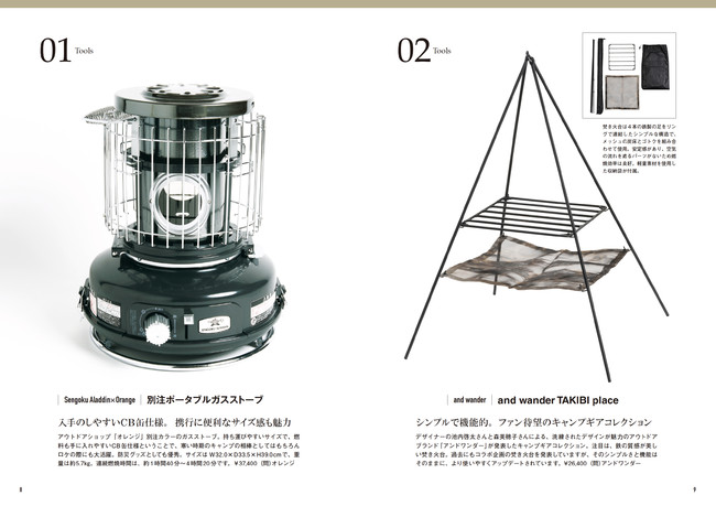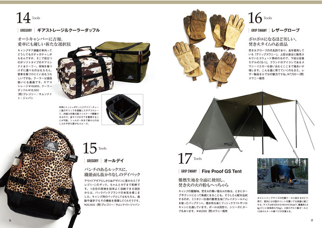 「遅ればせながらアウトドアに興味があるけど、今さら”何を揃えればいいか”を人には聞けない」という初心者は、この本に掲載されているギアを参考にすれば、間違えることはないだろう。もちろん、どっぷりとギア沼にハマってしまったマニアの方々も楽しめる一冊。既存の作法に捉われずに自由な視点で選ばれたツールやウェアは、アウトドア好きの人はもちろん、純粋なギア好きの面々の世界も大きく広げてくれるはずだ。