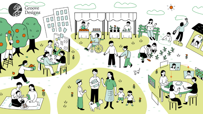 Groove Designsは、人とまちの新しい関わり方をデザインします。 都市空間、コミュニティ、デジタルサービスのデザインなどを通じて、まちに暮らす一人ひとりが当事者となり、幸せと誇りを実感できるまちづくりを目指します。