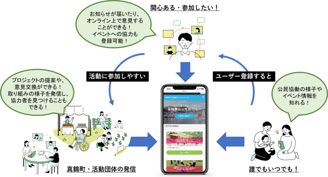 「真鶴町公民協働プラットフォーム」の利用イメージ