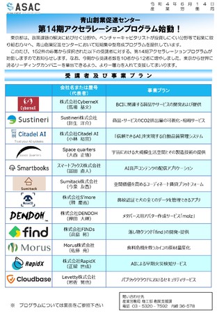14期採択企業一覧:https://acceleration.tokyo.jp/detail.php?keyno=360