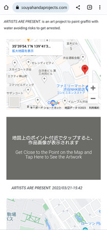 本プロジェクトへはウェブサイト( https://goviral.souyahandaprojects.com/ にアクセスすることで参加することができます。作品の実際の実施場所を訪れることで、ウェブサイト上で作品画像が閲覧可能になります。