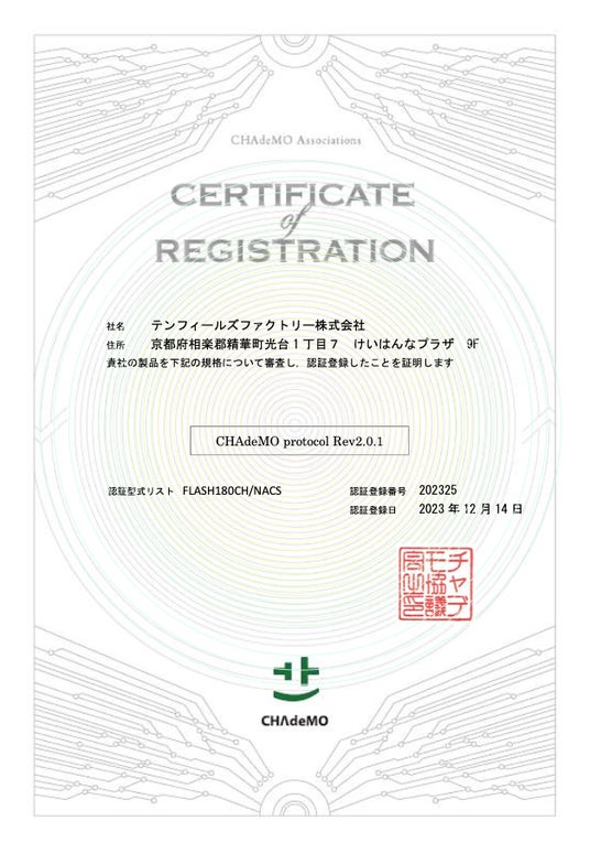 テンフィールズファクトリー(株)は、超急速EV充電器「FLASH」のNACS(テスラ規格)とCHAdeMOの両対応モデルを1/20に発売いたします。