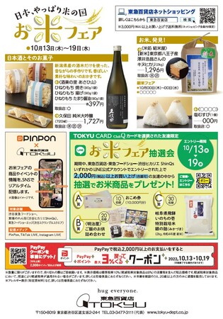 実店舗型ライブコマース事業を運営するPinPon株式会社(所在地:東京都渋谷区、代表取締役:藤堂夏輝)は2022年10月13日(木)~19(水)の期間、株式会社東急百貨店が渋谷東急フードショーをはじめとした都内の食品専門店と食品売り場にて開催する「~日本、やっぱり米の国~ お米フェア」(以下、お米フェア)に、最新のライブ配信で商品紹介やイベント情報を毎日リアルタイムに行います。