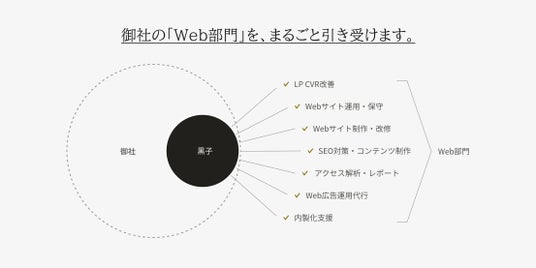 黒子(くろご)は、企業のWeb運用を支える 外部Webチームサービスです。