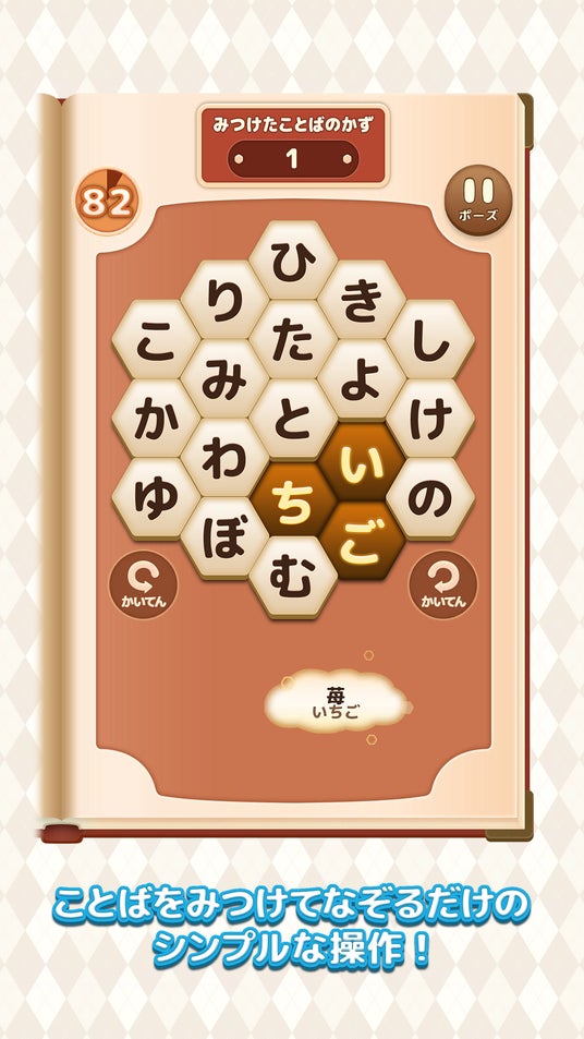 文字のかかれたパネルを順番になぞり、ことばを見つけるだけのシンプル操作で、ことばを覚え始めたお子様にもぴったりなゲームです。