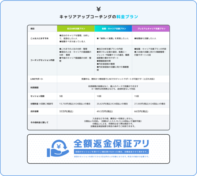オンラインキャリアトレーニングサービスを提供するLearn&Grow LLC(本社:東京都渋谷区、代表:長沼智久)は、キャリアコーチングサービス「キャリアアップコーチング」にて、、自己分析から、転職活動、入社後の活躍までサポートする「プレミアムキャリアプラン 33%OFF!特別割引キャンペーン」を3月限定で実施します。
