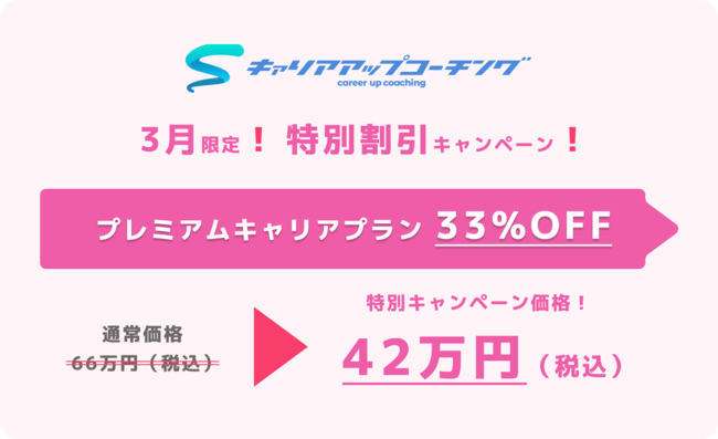 ■キャンペーン対象:2022年3月1日~2022年3月31日までに無料面談にお申し込みいただいたお客様で、当月中に、「プレミアムキャリアプラン」のお申込みをされた方
