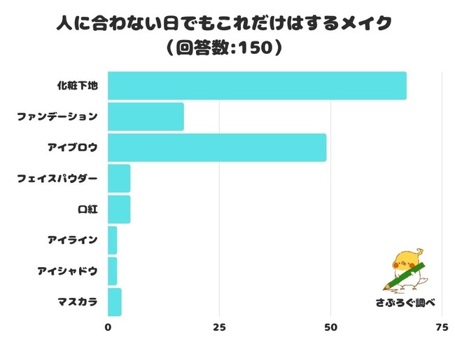 人と会わない日でもこれだけはするメイクをアンケートにて調査したところ、1位は「化粧下地」でした