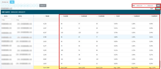 期間指定をして各店の欠品データを集計