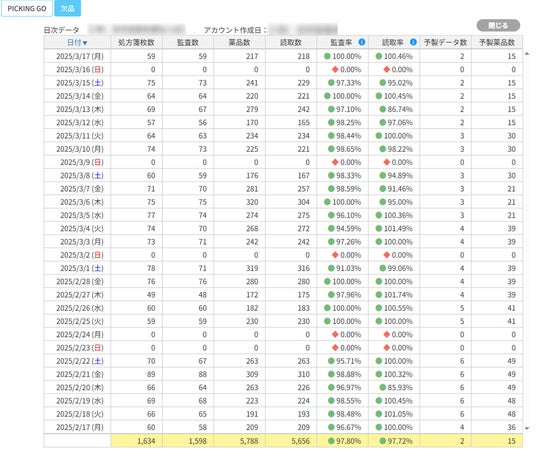 2. PICKING GO利用状況確認画面