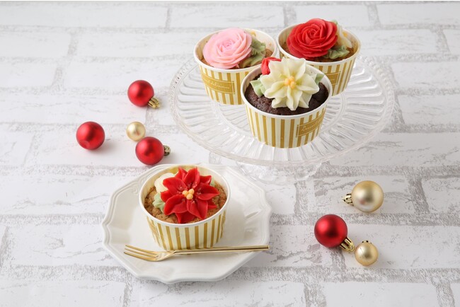 商品名 : 食べられるお花のクリスマスカップケーキ4個セット