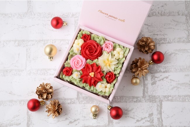 *視覚と味覚が一度に満たされる、フラワーピクニックカフェの限定版クリスマスフラワーケーキ、