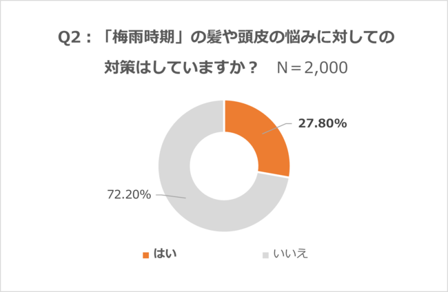 Q2:「梅雨時期」の髪や頭皮の悩みに対しての対策はしていますか?]
