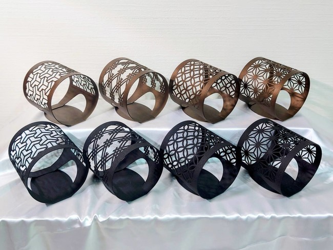 3.デザインには和柄の中で縁起が良いとされる吉祥文様を採用。4種類をご用意いたしました。(色はブラックとブロンズの2種類)
