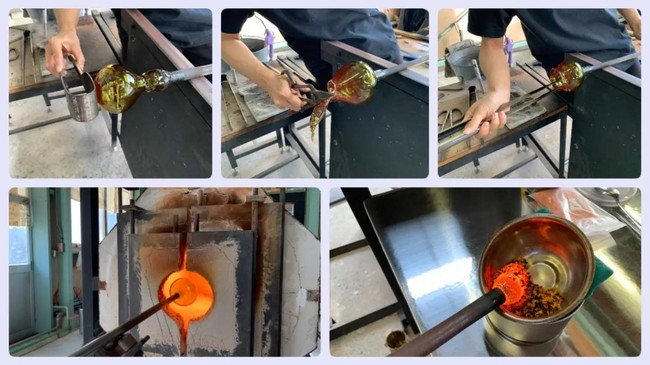 2種の色、4種の吉祥文様、7種の手作り吹きガラス瓶から好きな組み合わせで購入可能です。