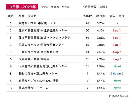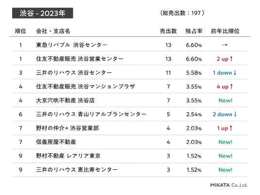 今まで「売買仲介のランキング」といえば、各社の営業エリアはあまり考慮されず、法人ごとに取扱高または仲介件数を計上した大規模な調査結果を目にする機会が多かったのではないでしょうか。本ランキングは、より現場に近しい目線で「エリアごとに最も売主から選ばれている店舗はどこなのか?」を可視化するために、支店ごとの年間売出件数を集計しました。自社顧客向けのアピール材料や、競合店舗の把握など、日々の営業活動にお役立ていただけますと幸いです。