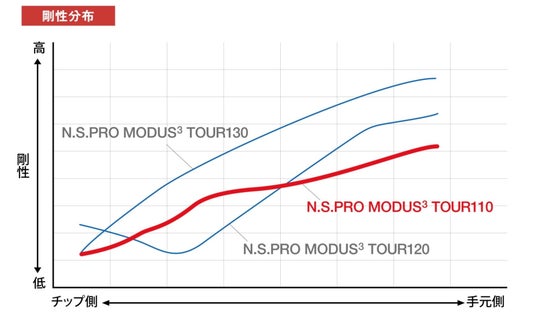 今回のプロジェクトは、ツアーで展開しているプロトタイプを整理し、求められる弾道や好まれる重量帯に対するヒアリングを繰り返し、より速く・より強く・より操作性に優れたシャフトのニーズを明らかにしました。その結果、N.S.PRO MODUS³ブランド第2章の新たな幕開けにふさわしいMODUS³シリーズ6モデル目となるN.S.PRO MODUS³ TOUR110が開発されました。(※2024年当社調べ)