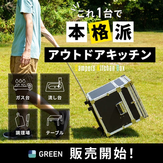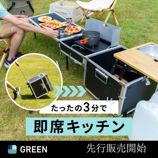 アウトドアのくつろぎ時間を一段と豊かにする「Campers Kitchen Box」が、2024年10月4日(金)に【GREEN FUNDING】でリリースされました。アウトドアでの調理がこれ一台で完結するオールインワンキッチンテーブルが登場し、現在、先着30名様限定で25%OFFの特別価格で提供中です。【https://greenfunding.jp/lab/projects/8548】