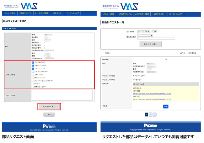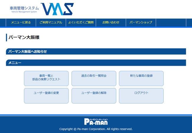株式会社パーマンコーポレーション(本社:大阪市西区、代表取締役:中部祥元)は車検証情報をもとに車両管理とその車両で使用できる自社販売部品の検索を一度に実現できるパーマン車両管理システム「VMS」の無料サービスを開始しました。