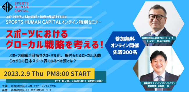 公益財団法人スポーツヒューマンキャピタル(代表理事:本間浩輔)は、2023年度受講コース説明会を併催した特別オンラインセミナーを開催いたします。