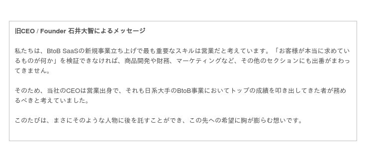 この度の竹内のCEO就任を契機に、より付加価値の高い事業を、より多く世の中に送り出してまいります。