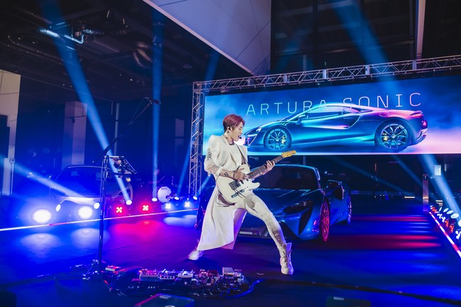 マクラーレンの新しい章を告げるARTURAは、新開発のMCLA (マクラーレン・カーボン・ライトウェイト・アーキテクチャー) と 一新したパワートレインを搭載。会場には、Flux Green、Ember Orange、Volcano BlueのARTURA がディスプレイされ、MIYAVI氏はステージでその研ぎ澄まされたギターテクニックによるライブパフォーマンスを披露し、それぞれのフィールドで究極を極めるパイオニアとしての二者が融合し 来場者を魅了しました。