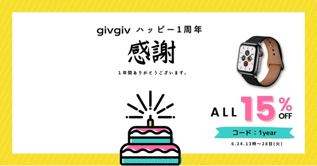 Apple Watchのバンド・ケースを専門に取り扱うECショップ「givgiv」(株式会社USPブレイン、所在地:東京都小平市、代表:崔 赫)ではこの度、オープン1周年感謝キャンペーンとして6月24日~6月28日まで、全商品15%OFFセールを実施することをお知らしたします。