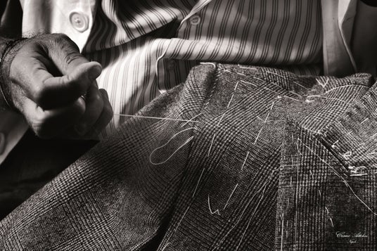 しなやかで洒脱なディテールを持つ「ナポリ仕立て」を創案したチェーザレ アットリーニのスーツは、生地の厳選からアイロン仕上げに至る多くの工程が卓越した職人の手仕事により作られ、世界最高峰とも称されています。