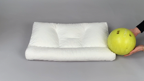 頭と同じ重さとして5kgのボーリング玉も、ラテックスの「反発力」で、秒睡まくらの上をかる~くスムーズに転がることが分かります。