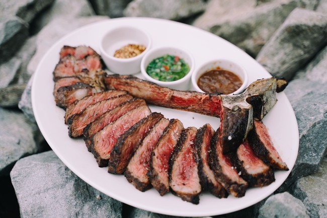 メインとなるのは、宮崎が誇る黒毛和牛のサーロインステーキや国産和牛のTボーンステーキ、国産和牛のランプなど、豪快に盛られたステーキ料理の品々です。