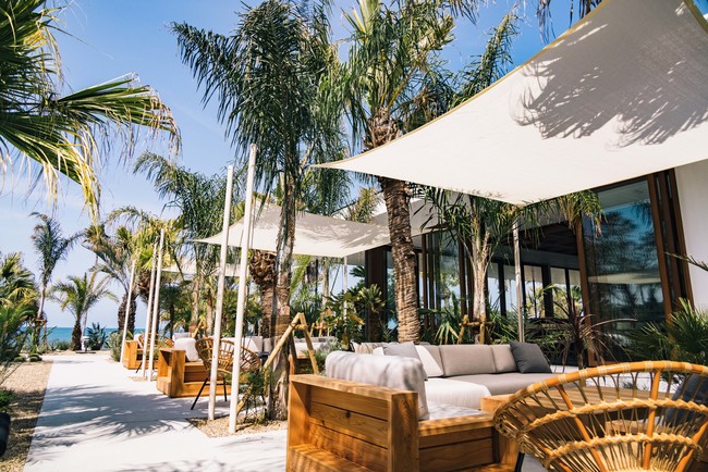 AOSHIMA BEACH VILLAGE は旧橘ホテル跡地としても知られる5,500坪にわたる広大な敷地にオープンします。施設内には、レストランとBBQエリアで構成されたオールデイダイニング「LDK」、バレルサウナと海が一望できるプールが並んだプール・サウナエリア、そしてNOT A HOTEL 株式会社が開発・運営を行う「NOT A HOTEL AOSHIMA(ノット・ア・ホテル青島)」が併設される予定となっており(2022年秋頃)、ヴィレッジの名の通り、複数の建築とエリア、そして機能が詰まった場所となります。開業第一弾となる今回は、LDKとその周辺の屋外ガーデンがオープンし、その他のエリアについては2022年秋頃の開業を予定しています。