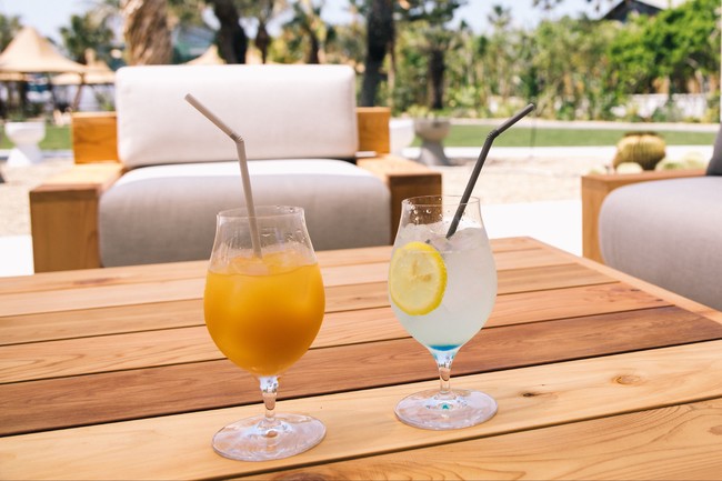 アルコールは、定番のビールやサワーのほか、日向夏を使ったジントニックやAOSHIMA BEACH VILLAGE内で育てられた新鮮なハーブを使ったカクテルなど、フレッシュな食材を使ったドリンクをお楽しみいただけます。一流のソムリエが料理に合わせて世界各国からセレクトしたワインはグラス、ボトル、両方でご注文いただけます。