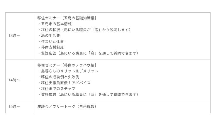 ・参加対象 離島移住に関心がある方、五島市への移住を検討中の方、五島市へUターンを検討中の方など
