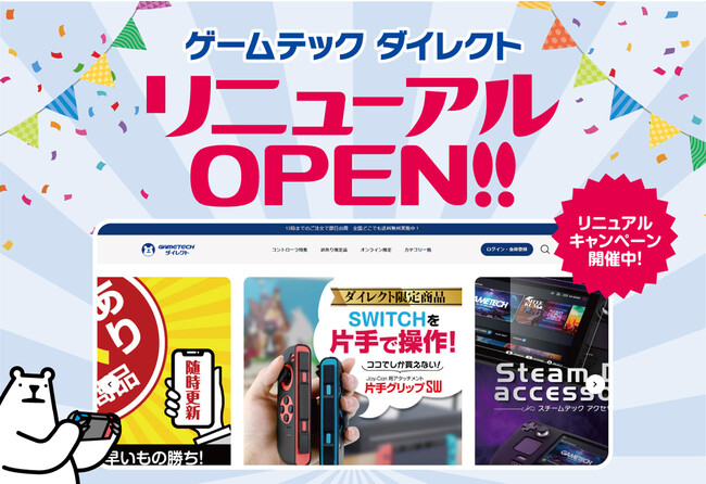 家庭用ゲーム機の周辺機器メーカーである株式会社ゲームテック(本社:福岡市、代表取締役社長:永山 久)は、サービス向上のため公式オンラインストア『ゲームテックダイレクト』(https://shop.gametech.co.jp/)を2023年1月23日(月)にリニューアルオープンいたします。