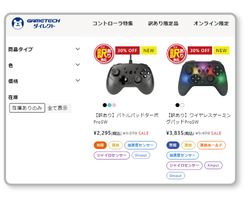 クラウドファンディングにて再販が決定したSwitch Joy-Con用「片手グリップSW」など、オンラインストアでしか買えない限定商品が登場!