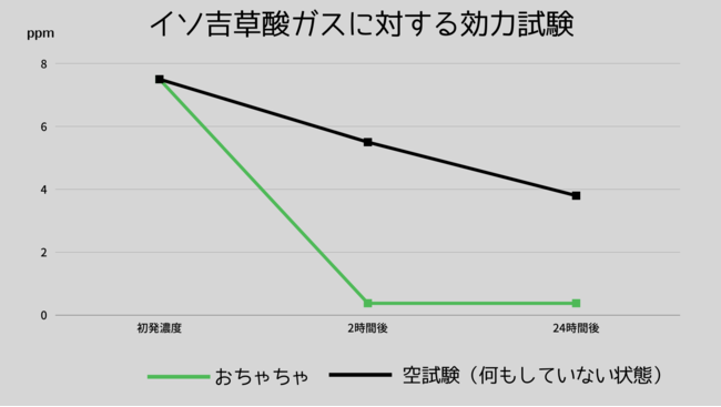 さらに、生活臭の悪臭の原因と言われている、イソ吉草酸ガス(靴下のニオイ)へ高い消臭効果を発揮します。