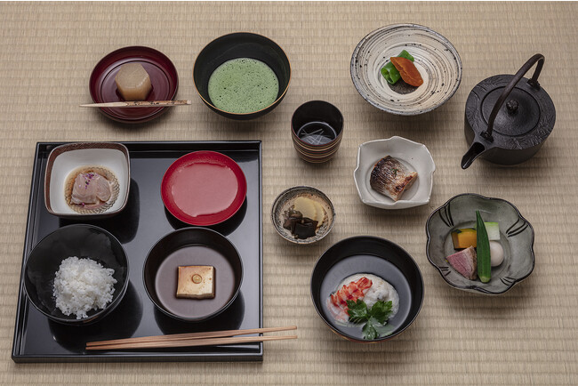 『南青山 即今』は、茶道宗和流※十八代の宇田川宗光が監修する茶事レストランで、茶室で楽しむ薄茶、広間でくつろぎながら味わう茶懐石、茶事×カクテルの新体験をお愉しみいただきます。茶懐石料理は、茶事をベースにしたオリジナルで、茶懐石料理店、加賀料理店で修業後、実父が営む出張茶懐石料理店「いわや」で茶懐石料理を30年以上携わってきた板長の岩谷博一が腕を振るいます。お茶事は、元来お点前だけではなく、亭主との会話や季節の料理を楽しむことも目的の一つにしており、初めてお茶事を体験される方はもちろん、すでに茶の湯を嗜まれている方も新しい発見に満ちた時間をご提供いたします。