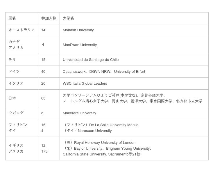 また、大会参加者も決定し、世界11カ国から前回大会を上回る372人もの学生が神戸を訪れ、様々な国際課題について、議論を交わします。