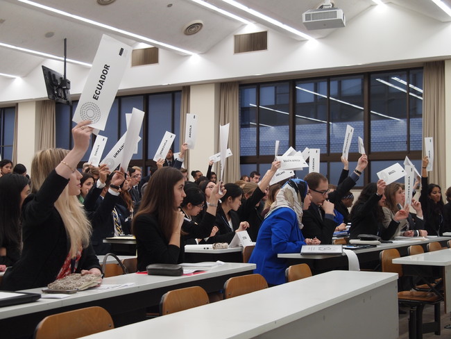 本学は英語力や会議でのコミュニケーション能力、リサーチ力を磨くため、模擬国連の授業を開講し、毎年模擬国連世界大会へ学生を派遣する等、模擬国連の活動に注力してきました。今後も本学は、模擬国連の活動を通じて、世界に通ずるグローバル人材の育成に努めてまいります。