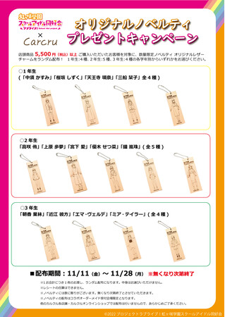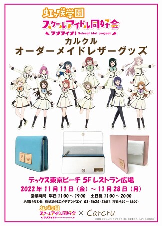 株式会社エイチアンドエイ(本社:東京都墨田区 URL:https://www.carcru.com/ )が運営する革小物ブランドcarcru(カルクル)は、「ラブライブ!虹ヶ咲学園スクールアイドル同好会」とのコラボ企画、オーダーメイドレザーグッズのご注文受付とノベルティ配布キャンペーンをデックス東京ビーチ シーサイドモール5Fレストラン広場 特設会場にて開催いたします。
