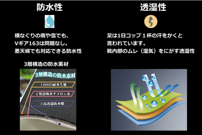 『Vギア163』は、雨や雪の日の足元を快適にする機能が詰まった防水ブーツです。