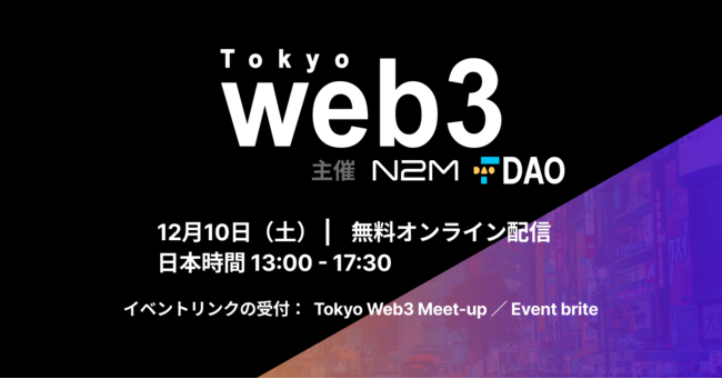 国内外のWeb3事業の支援をしている株式会社N2Mと、暗号資産とデジタル資産の教育を目的に立ち上がったFTT DAO JAPAN が、日本と世界のWeb3市場を繋ぐことを目指すカンファレンス「Web3 Tokyo 2022」を今年の12月10日(土)に初めてオンラインにて共同開催します。