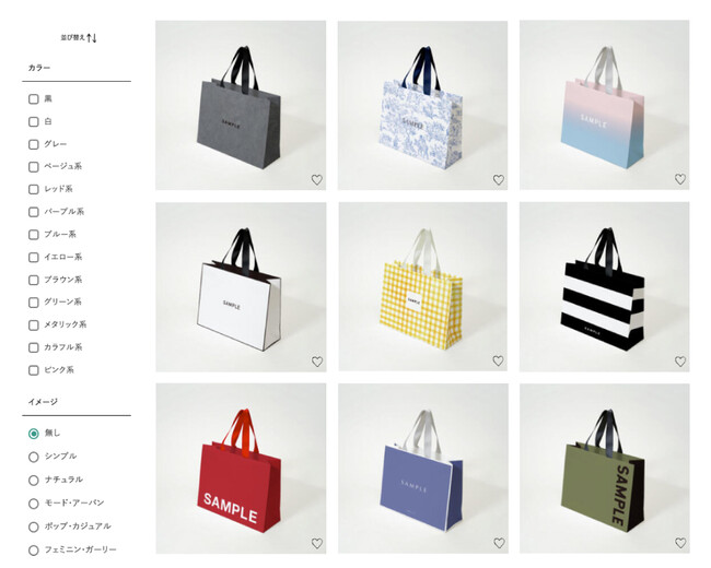 気に入った紙袋デザインはお気に入りに入れたり、お見積りを送り、注文することが可能です。