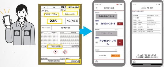 ラベルAI識別OCRは、Android(TM)スマートデバイスのカメラを使って物流ラベルや商品ラベルを撮影し、AIがラベルの種類を瞬時に識別します。さらに、各ラベルに設定された文字やバーコードを一括でデータ化する革新的なソフトウェアです。