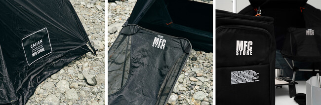 今回、コラボレーションに伴いテント、チェア、キャリーバッグには「MFC STORE」のロゴがデザインされております。また、キャンプだけではなく防災用の備えとしても活躍します。