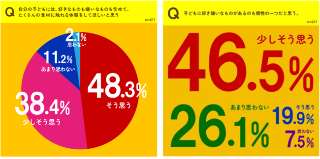66.4%が「子どもに好き嫌いなものがあるのも個性の一つだと思う」、 64.5%が「子どもの好き嫌いがもっと許容される文化(風潮)になってほしいと思う」
