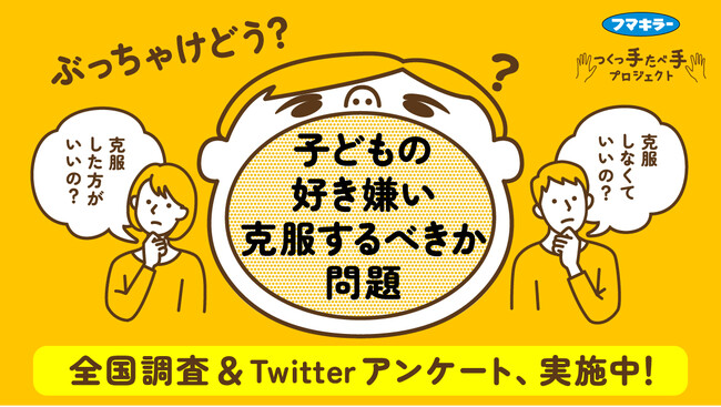 第二弾として、”子どもの好き嫌い”に着目した「子どもの好き嫌い克服するべきか問題」を2023年1月24日より実施いたします。その一環として、3歳から12歳までのお子様をもつ親617名を対象とした「子どもの好き嫌いを克服すべきか問題 大調査」を実施。親のインサイトを調査を通じて紐解きながら、皆様と“子どもの好き嫌い“について考えるきっかけになればと思います。フマキラーは、このプロジェクトを通じて、「好き」に出会おう。「嫌い」にも出会おう。という「子どもの新しい食の体験の出会いの大切さ」を、子どもたちやその親に向けて伝えて行きたいと思います。