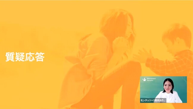 2022年5月、「子育てを学ぶオンラインスクール」としてローンチした本スクール。今回の「モンテッソーリ教育から学ぶ子どもの自己肯定感を育むための『聴く力』」は、本スクール初のイベントとして、主に0~6歳の子どもを持つ親御さんを対象に行われました。