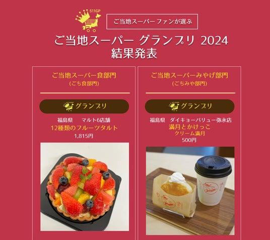 2024年4月20日~5月8日までの期間、ファンはご当地スーパー協会のインスタまたは特設投稿サイトで投票済み。グランプリ商品に投票したファンには抽選で3名様に各部門のグランプリ受賞スーパーより、「ご当地スーパー詰め合わせ」(3000円相当・送料税込)が贈られます。