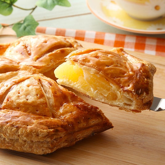 秋田県産に限定したリンゴを選び、シャキシャキ食感が楽しめるように、硬めに仕上げたリンゴコンポートを1個分丸まる使用。リンゴを滑らかなカスタードクリームと組み合わせ、パイ生地はさっくりと焼き上げた、秋田県の食が詰まった自家製アップルパイです。